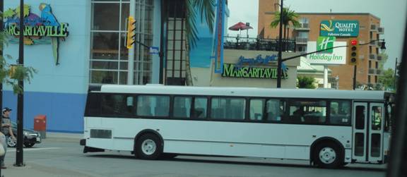 We then left after all the buses left. As we passed near the Fallsview Casino where I had seen John Schneider and Tom Wopat earlier this year, we saw two ex GO Transit Orion 5 suburbans. I photographed them.