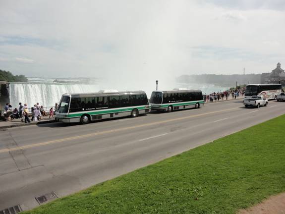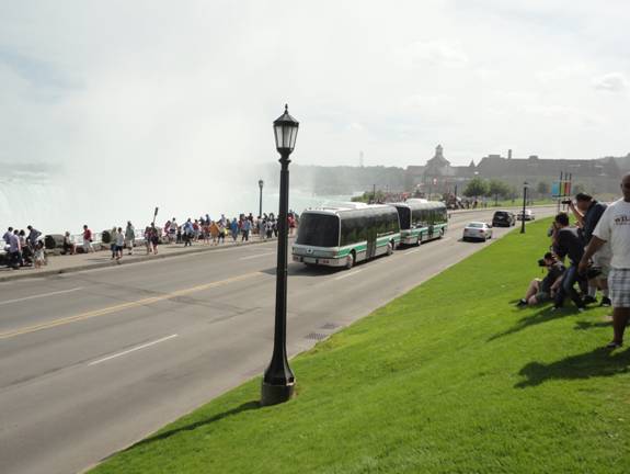 We then stopped to let us off so we could pose our bus with Niagara Falls in the background. At one point, a woman who was not part of the charter group posed for someone with her right by 8937. I photographed 8937 and some People mover Orion 4s.