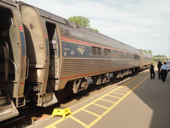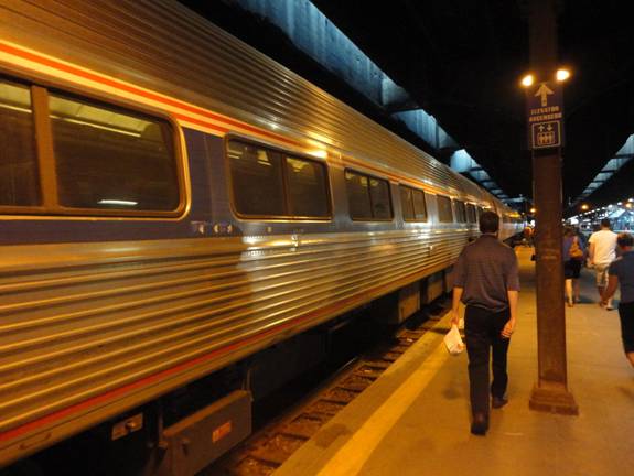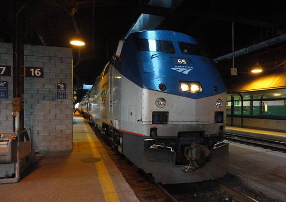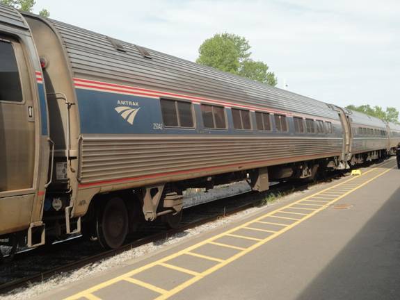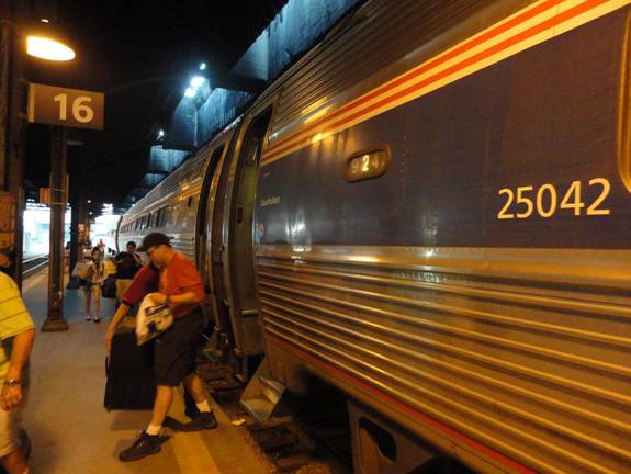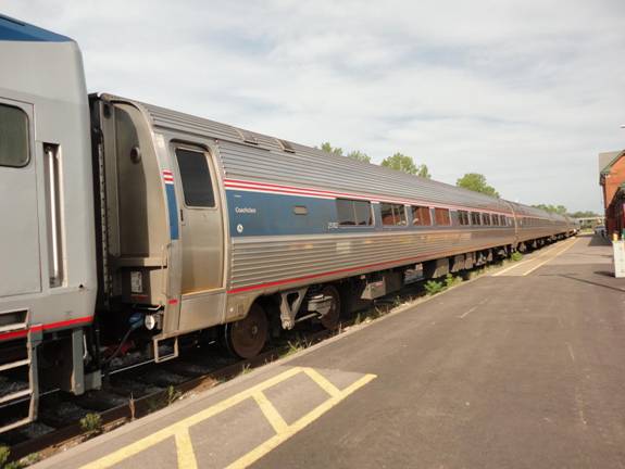 I went back into the station and waited. Boarding began just before 5:30 pm. I was seated in Amfleet 1 coach #82995, a former cafe car that was rebuilt into a coach. I was the first to board that coach. I sat down and worked on this report some more. Someone from the charter also boarded the train and sat across from me. The train left on time.