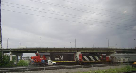 We soon passed a CN local and the new GO Transit storage yard which happen to have a couple 12 car trains led by new MP40 locomotives.