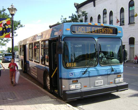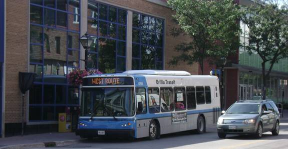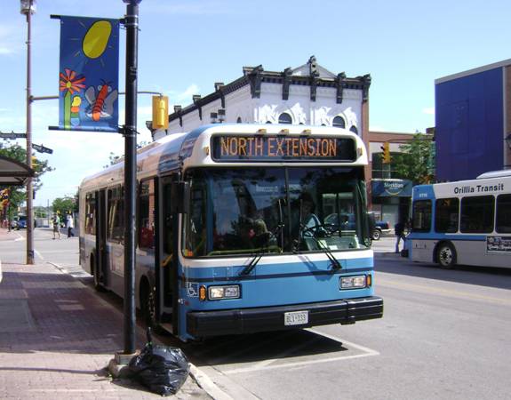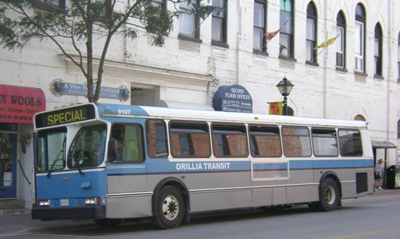 A few minutes later, we got off the highway and were in downtown Orillia. We arrived at the bus terminal where I got off and photographed the bus.