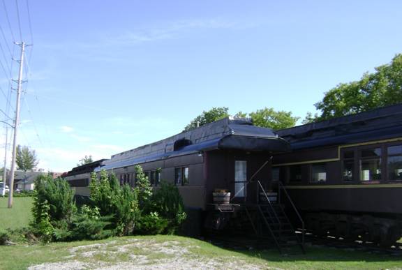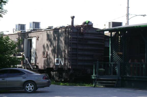 I then decided to walk to the Ossawippi Dining Express near my hotel. This restaurant is made from former CN and CP heavyweight coaches, an express box car, and former London and Port Stanley interurban #4 which is a sister car to L&PS #8 which fully restored at the Halton County Radial Railway Museum in Rockwood Ontario. I took some photos of the restaurant before I went inside.