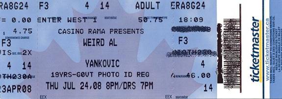 In March of 2008, I learned that my all time favorite music artist; Weird Al Yankovic was performing at Casino Rama near Orillia on July 24-25. I had been to two of his previous concerts in the Toronto area.