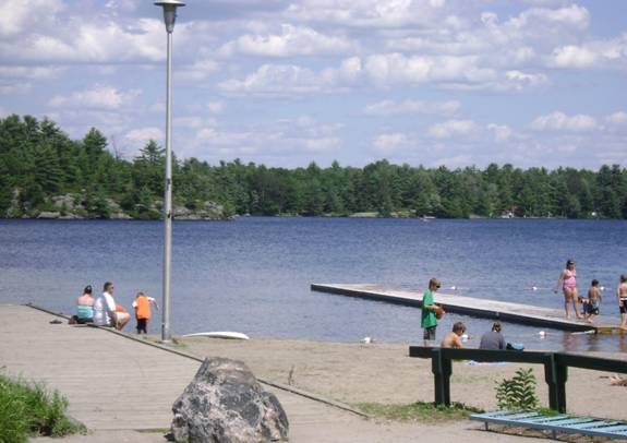 A little while later, I went across the street from the station and found a beach on the shores of Gull Lake. There were many cottages dotting the lake and it looked nice. I was reminded of my family’s cottage near Burk’s Falls. My family’s cottage is on a lake. At one end of the lake is a beach that I often go to.