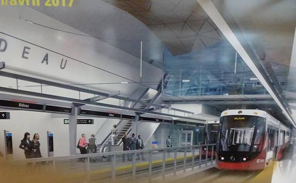 I rode to the Rideau Center and at one point, I got stuck in bus traffic! When I eventually got there, I went through the mall and found an STO stop. On the way, I photographed part of a poster for the new Confederation line.