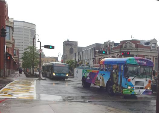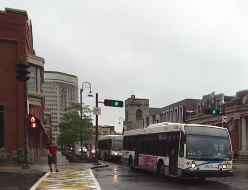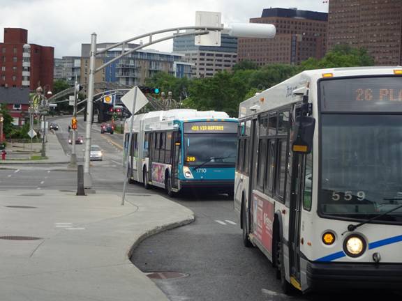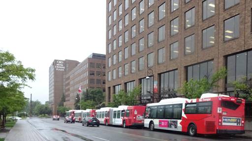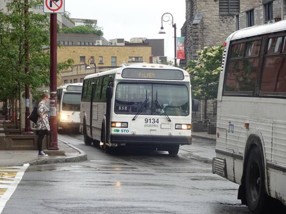 I filmed #9134 pulling away. I waited for a bus to take me back to the terminal. However, the bus that came ended up going to Tunney’s Pasture which will be the western end of the Confederation LRT line. I caught an OC Transpo bus back downtown. I then took an STO articulated LFS on route #59 into Hull and got off. Eventually, Classic #9131 came back and I photographed it before I got on.