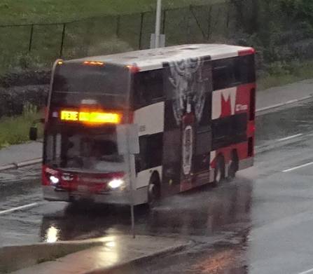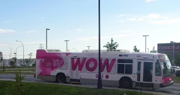 I filmed #1710 pulling away. I wandered around the area for a few minutes before I got on a 40 foot LFS and rode further in the direction on the private bus lanes to a station where several STO routes converge hoping to see more Classics and/or fishbowl #7901. However, after a few minutes it didn’t seem likely. I photographed a Nova LFS wrapped for a local radio station before I caught a bus back into Ottawa.