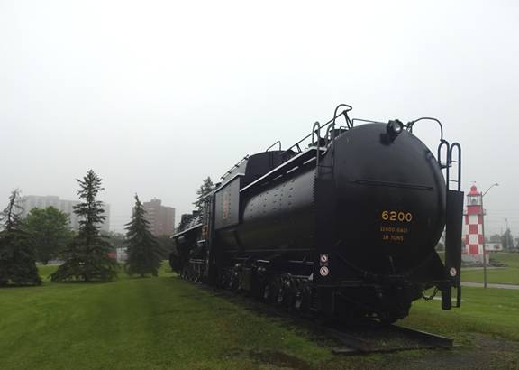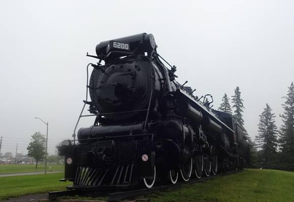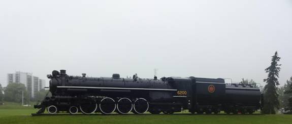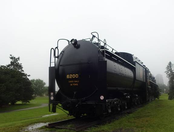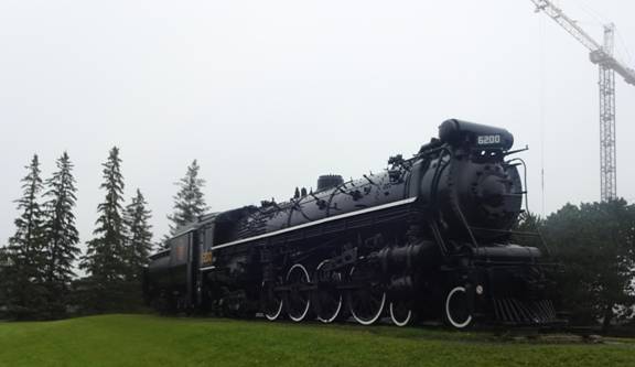 I got up shortly after 8:30 am and had breakfast. I got dressed and headed out. It was raining a little bit. I bought an OC Transpo day pass and rode a bus to St. Laurent. I was going to try to visit the Museum of Science and Technology which I visited back in 2009 and I was unable to visit due to the museum being closed. I saw on an OC Transpo route map that the museum was to reopen this year, but when I got there, it still was closed. I photographed former CN 4-8-4 #6200 on display in front of the museum.