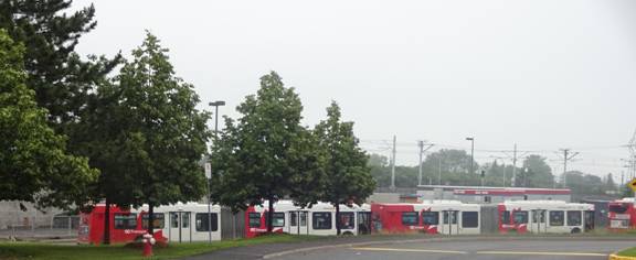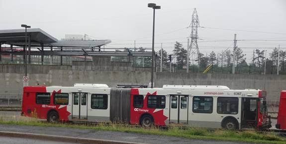 I then rode a Nova LFS back to the terminal. I boarded an OC Transpo bus back into Ottawa. I rode downtown and transferred to the route #97. The #97 still serves the Hurdman bus terminal which has been reconfigured to allow for an LRT station on the Confederation line. South of Hurdman, the Transitway remains intact. I rode to Greensboro and got off. I photographed a couple OC Transpo buses before I went to the Trillium line.