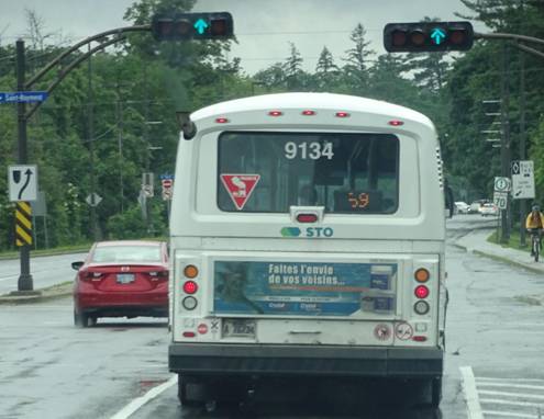 I waited for a few STO buses but only Nova LFS buses; both articulated and 40 foot versions came. I didn't see any Classics. I eventually boarded an articulated Nova LFS on route #59. I rode to the terminal I hung out at during my last trip to the Ottawa area. Just as I got there, I saw a Nova Classic pulling out. I decided to stay.