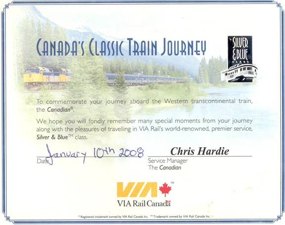 commemorate me riding in “Silver and Blue” class on the Canadian, even though