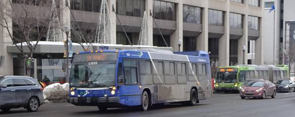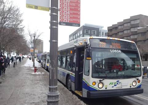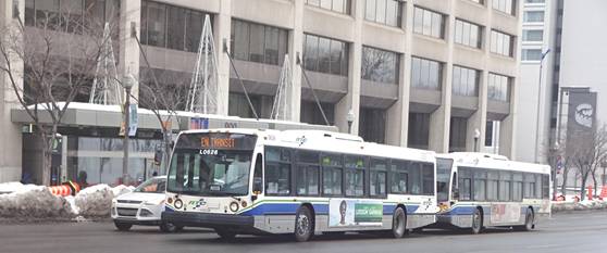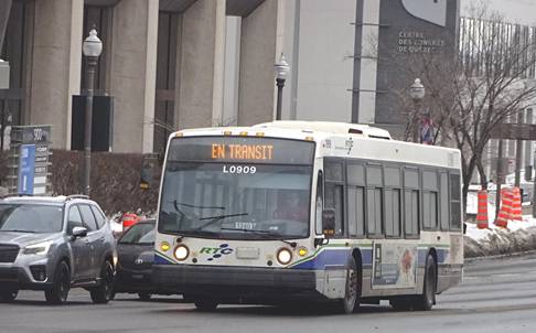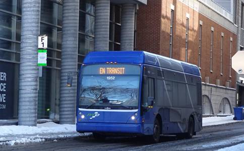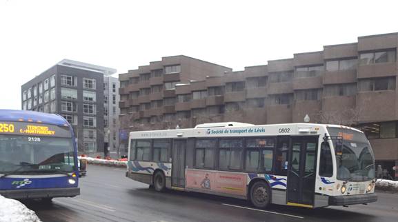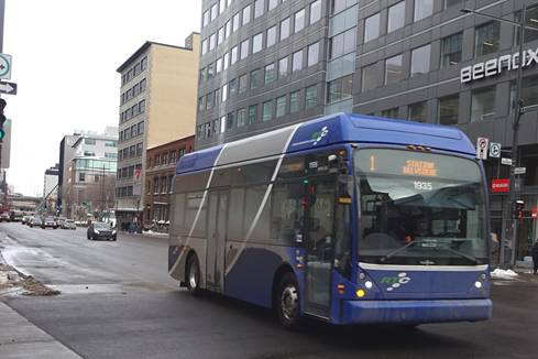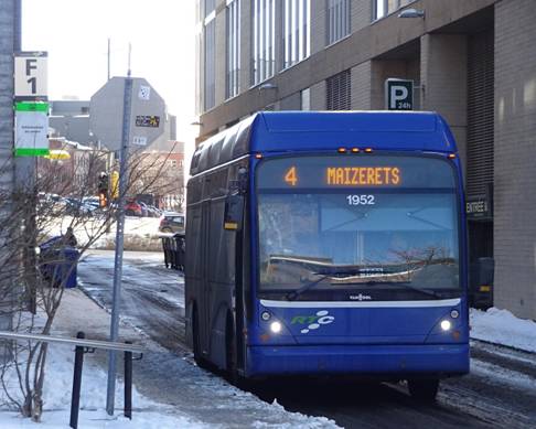I waited for awhile. I saw the first express buses would arrive in about an hour. I decided to kill time by heading to place Jacque-Cartier to try to photograph a Van Hool. I boarded a bus on route #801 and rode two stops. I got off and waited around. I eventually saw a Van Hool running on route #1. I photographed it.