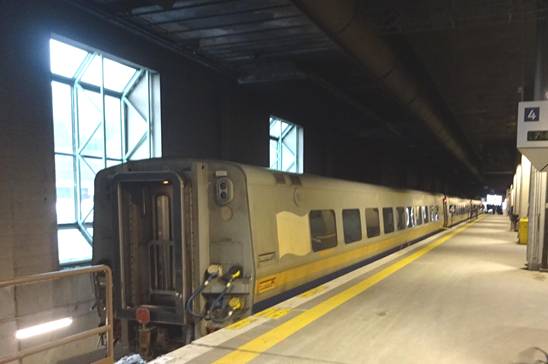 Normally train #35 would continue beyond Montreal to Ottawa. However, the VIA crew announced that passengers continuing west of Montreal would need to get off as passengers would be getting on a different train set. I was getting off in Montreal regardless. Train #35 arrived into Montreal 18 minutes late. I got off and photographed the train.