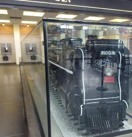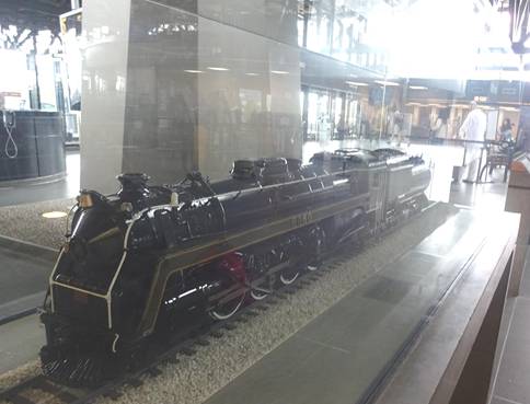 I then filmed a VIA train pulling into the station. It had a P42 and F40PH-2 bracketing five LRC coaches. I went inside the station and photographed the model steam locomotives on display.
