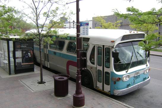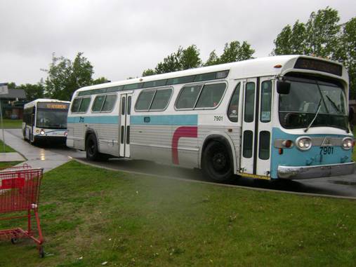After, we headed back to Terminal Promenades. On the way, we went on the highway. When we arrived, there were three more bus fans there. One of them was Mike Boone from Belleville who has come on several charters hosted by the Toronto Transportation Society. I took some last shots of 7901.