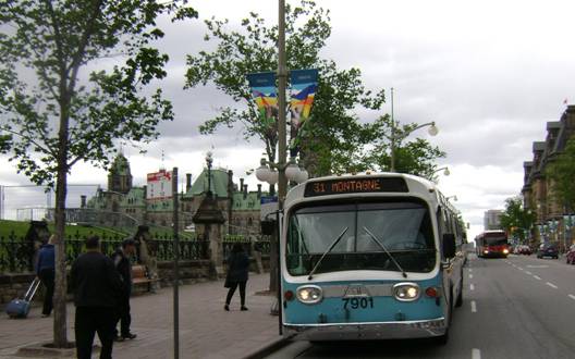 Meanwhile, the route 67 bus pulled up and I got on. From the bus, I filmed 7901 finally pulling away. A few other charter attendees also got on. One got off to transfer to the route 59. The rest of us rode to the Rideau Centre.
