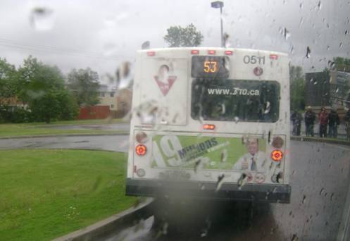 Aylmer mall. It was still raining. We got out and photographed the bus.