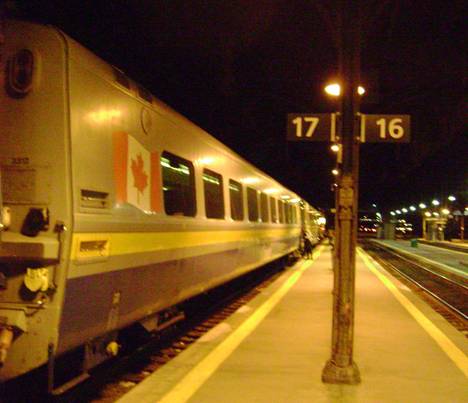 I rode the D60LF to the train station. I noticed when I got there that train 49 was using the same equipment that I rode into Ottawa yesterday as train 44. I also noticed train 638 as a J-train. That train consisted of P42 #915, two VIA 1 class LRC coaches, four economy class LRC coaches, P42 #920, another VIA 1 class LRC coach and an economy class LRC coach. I filmed it pulling out when I heard an announcement that my train was boarding.