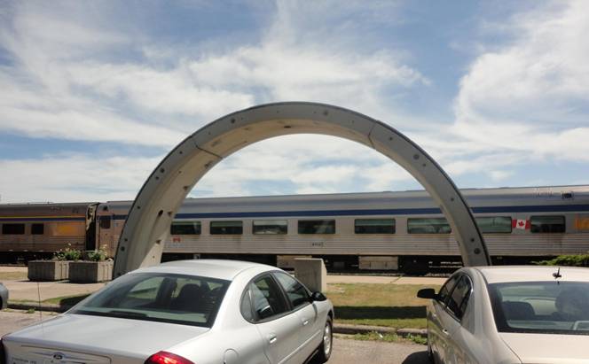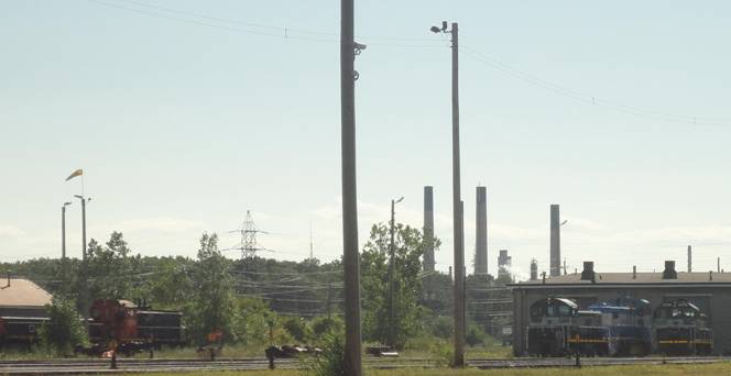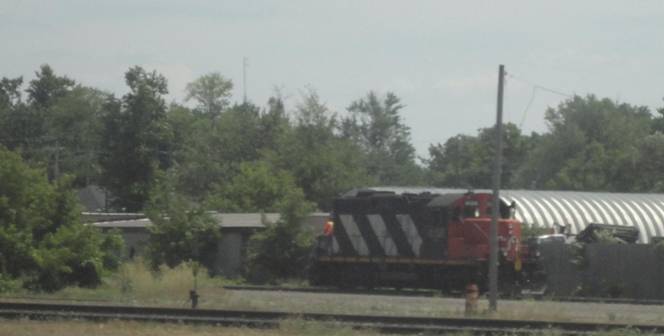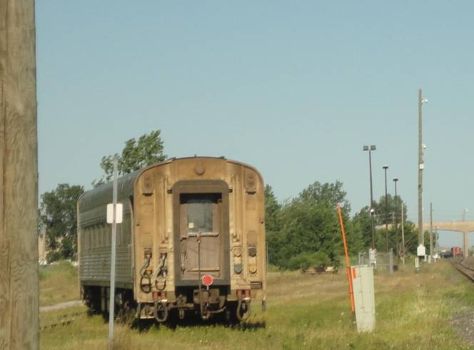 one minute late. We passed behind the London Transit bus garage. Moments later, I saw three tank car bodies on