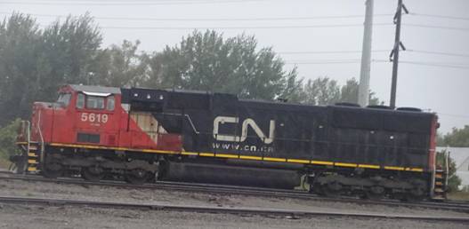 I waited a little while for the rain to let up. I then walked to a bus stop and waited for the route #3 bus. When the bus came I got on and rode a few stops past the CN yard. I got off and walked back. I saw the coaches from the Agawa Canyon Tour train and photographed them as well as various freight locomotives.
