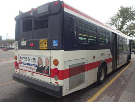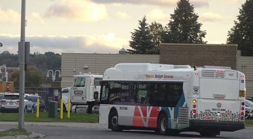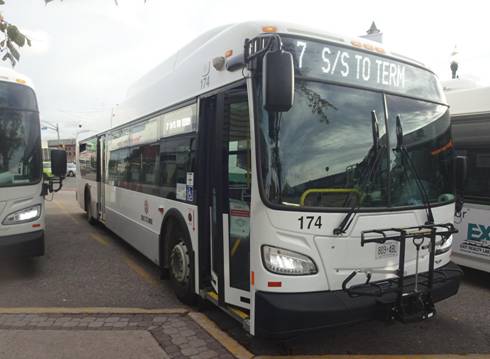 I then photographed Orion 7 #161 which is ex TTC #7907. I could make out the old TTC numbers at the back of the bus.