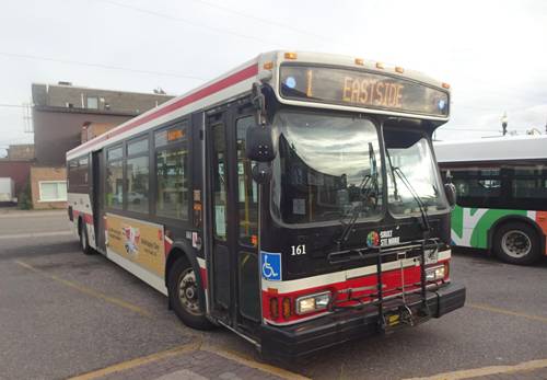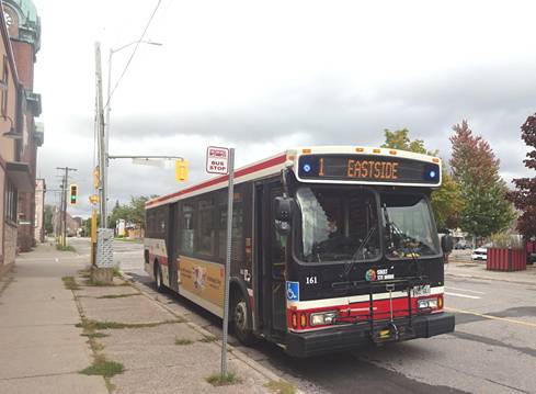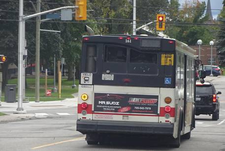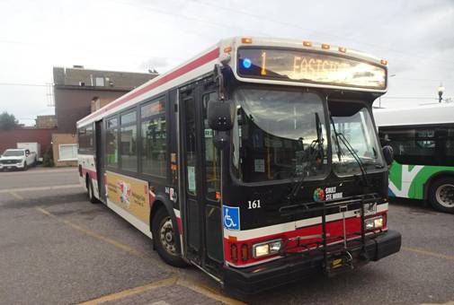 I then boarded Orion 7 #161. #161 is ex TTC #7907. I have now ridden all of the ex 7900 series TTC Orion 7s in service with Sault Ste Marie Transit. I rode the bus to a few blocks from my hotel and got off.