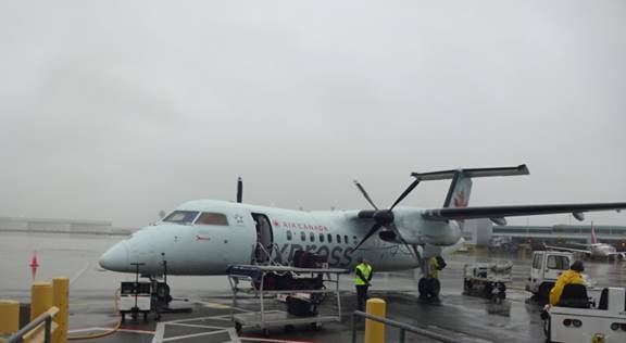 The plane that would be my plane home landed and taxied up to the terminal. It was another Bombardier Dash 8-300. I photographed the plane.