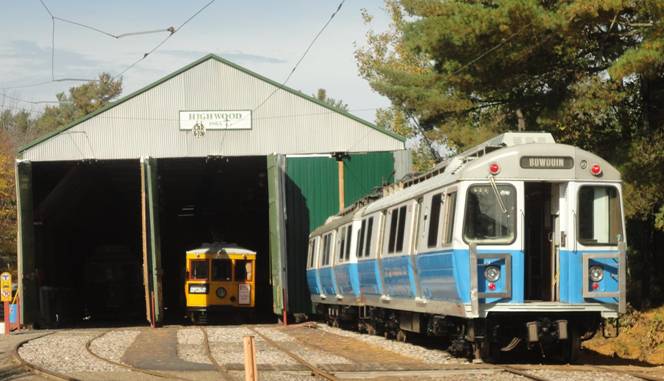 On the way back, I got to ride in the cab of the lead car. I filmed out the front windshield. For some reason, there was a step ladder with the words “Stolen from MBTA” engraved into the ladder. The ladder was intended to help evacuate the train in the event of an emergency. Why “Stolen from MBTA” was engraved into the ladder, I don't know. When we returned to the visitors centre, I photographed the Hawkers.