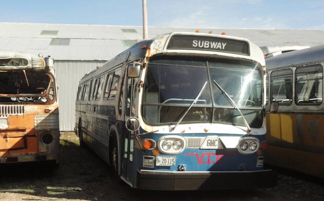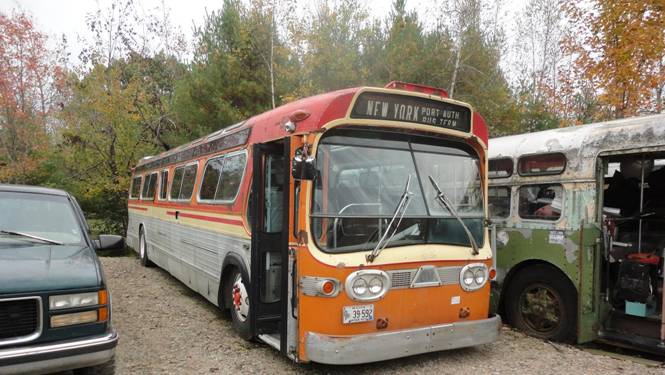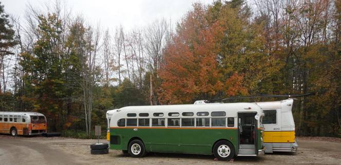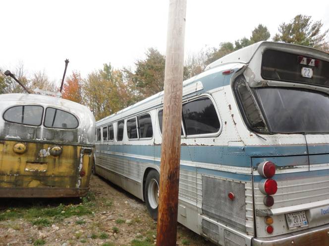 I saw a museum member working on glass top fishbowl #32 which came from the New York area. I remember that the late Grey Coach Company in Toronto ran glass top fishbowls, but none survive as far as I know. Awhile ago, a tree fell on top of #32 breaking two windows on the roof which will be expensive to fix. I saw that #32 was going to be moved but not to far. I did ride on it when the bus moved no more than two bus lengths but it was far enough for me to say I rode a glass top fishbowl! After, I photograph it.