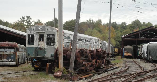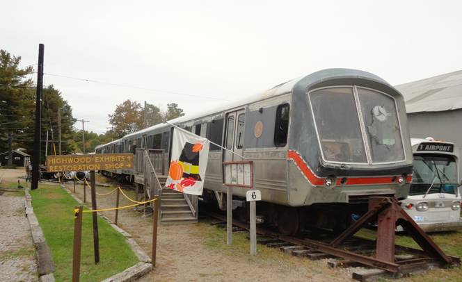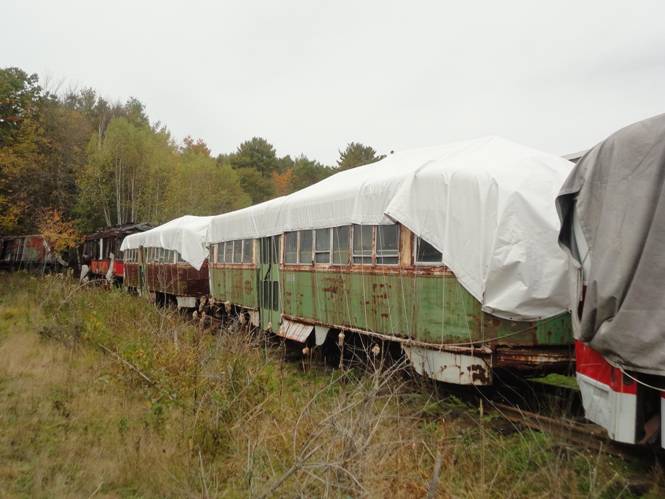 The New York City Redbirds were going out next. I went for a ride in car #9327. After the ride, I saw Connecticut fishbowl #8306 and Washington DC fishbowl #6481 were now up front. #8306 was about to go out so I asked if I could go for a ride and I was told I could. The bus drove behind the restoration barn where I photographed a former Rochester streetcar under a tarp.