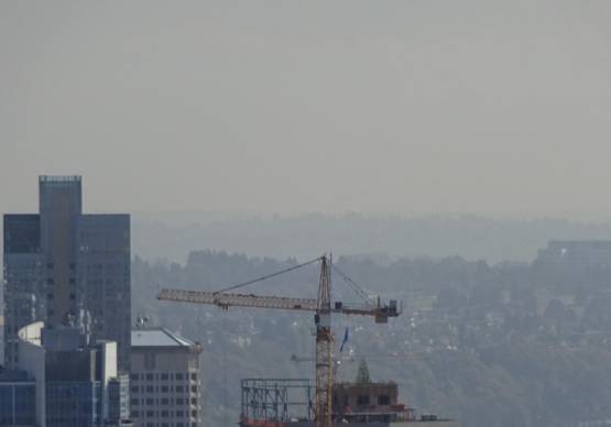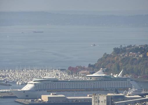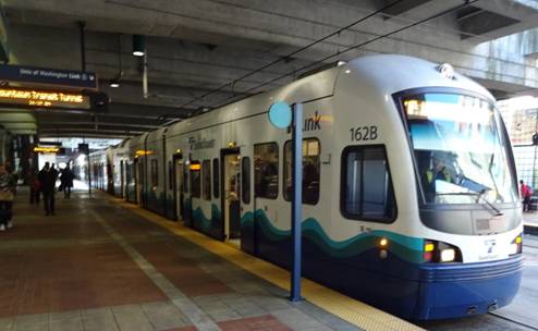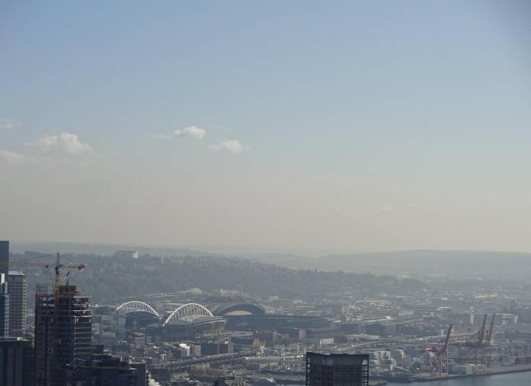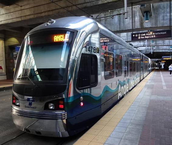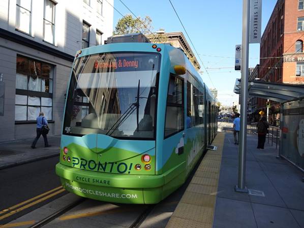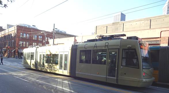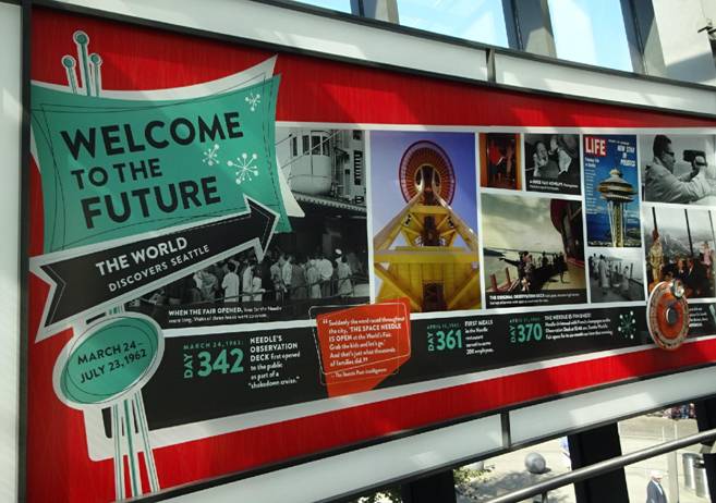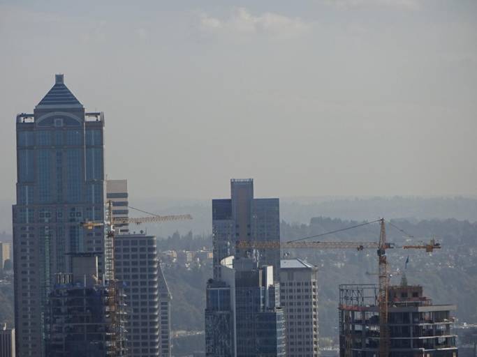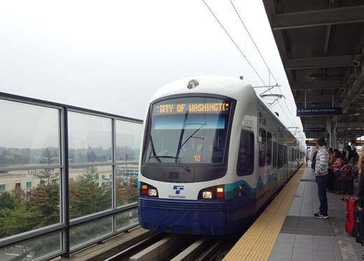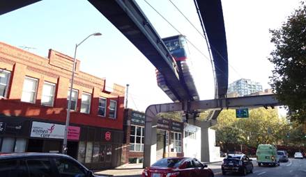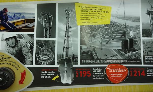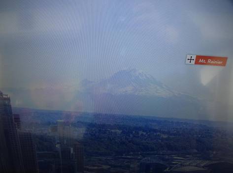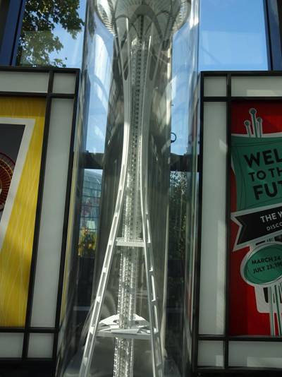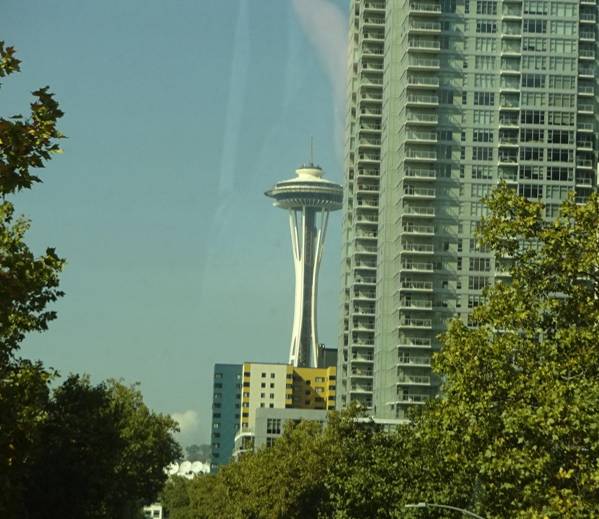 I got on and sat at the front. The train soon departed. As we got close to the Space Needle, I photographed it.