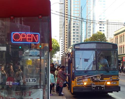 I waited for the next Rapid Ride bus to come. They use DE60LFrs on Rapid Ride. I photographed one before I got on.