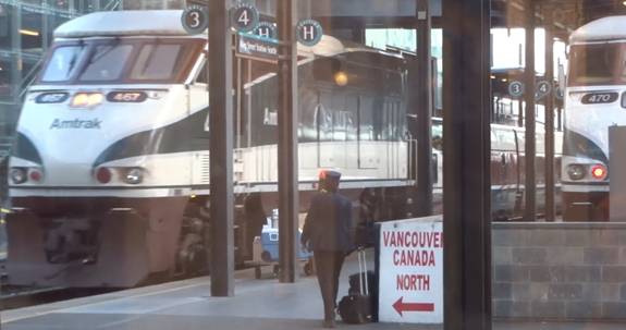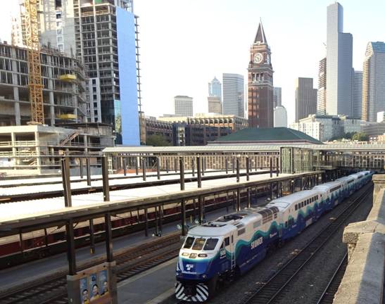 my suitcase, I photographed an Amtrak Cascades train awaiting its departure