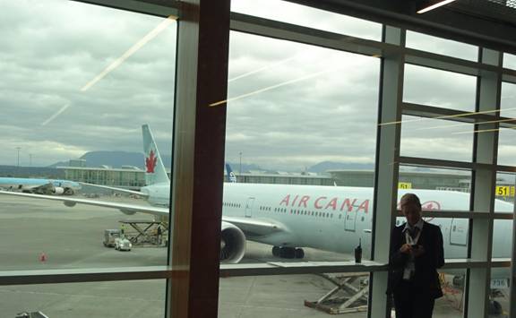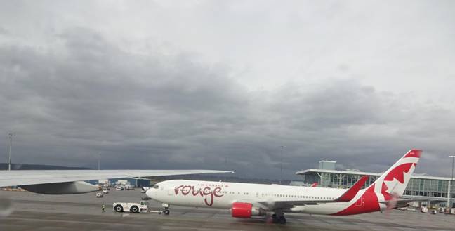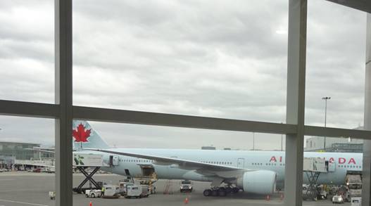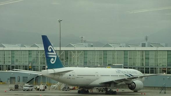 I returned to my gate and awaited boarding. We eventually did board. I had a window seat on the right hand side of the plane. We departed 20 minutes late. As we left, I photographed an Air New Zealand Boeing 777 and an Air Canada Rouge Boeing 767-300.