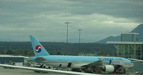 I returned to my gate and saw my plane was now leaving 20 minutes late. When it showed up, I attempted to photograph it as well as a Korean Air Airbus A330.