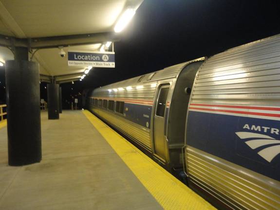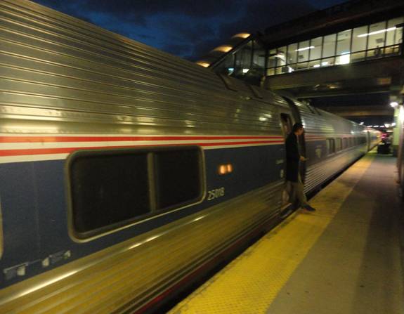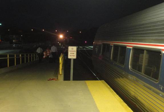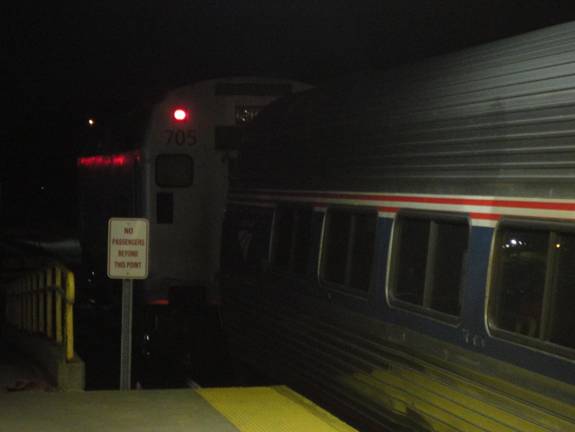 I then got back on the train. The HEP was soon restored and the train departed at 7:21 pm; six minutes late. The train stopped at Hudson and Rhinecliff. I bought dinner and returned to my seat after kicking someone who was sitting there.