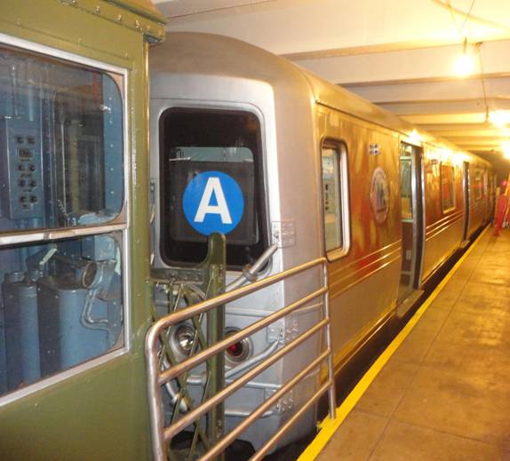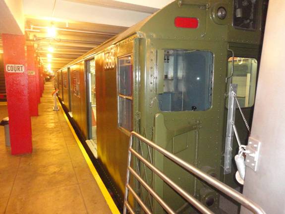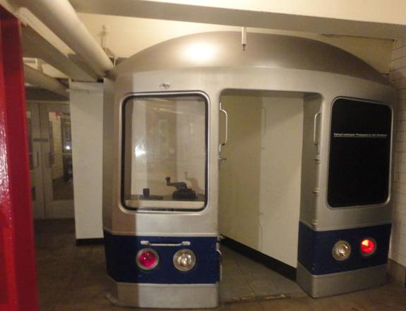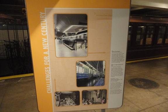 I was wondering if the cars on display were the same ones I had seen in June. I saw that a set of R40 slant cars were now on display in the station. I took some photographs of them and other cars on display.