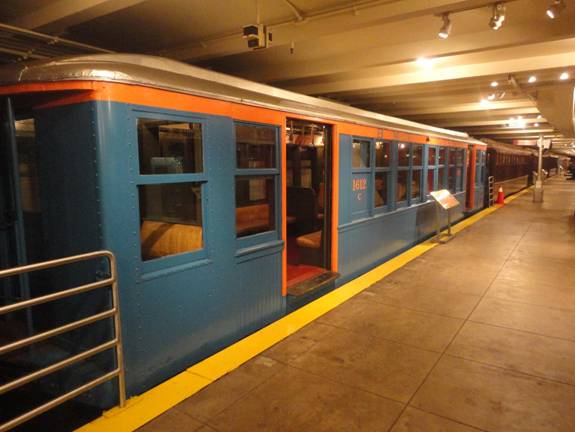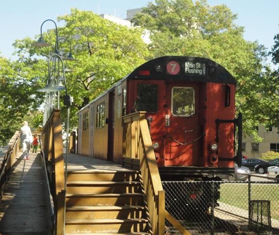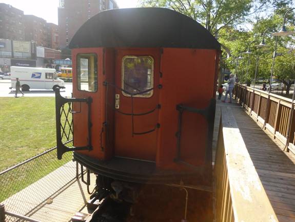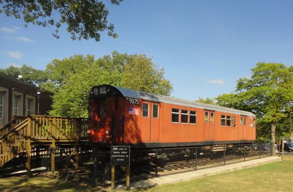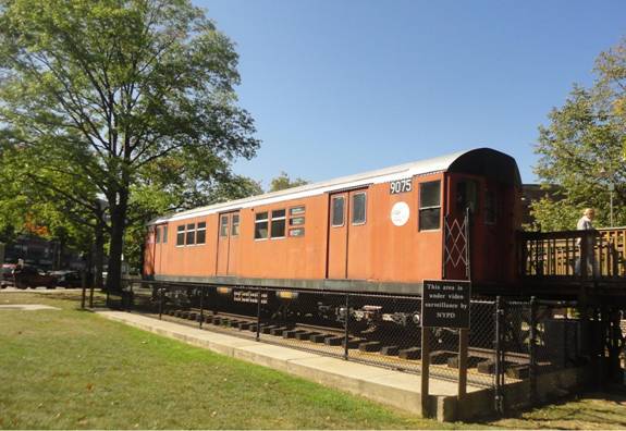 I got on the subway and rode to Grand Central station. I looked around the station before I boarded a “7” train and rode one stop west to the Port Authority Bus Terminal where I bought lunch. I got on the “7” line again and rode east. The “7” line passes above Amtrak's Sunnyside yard. As we passed the yard, I filmed the equipment in the yard. I got off and transferred to the “F” train and rode to Kew Gardens Union Turnpike where I got off and walked to where the Redbird subway car is on display. I photographed it.