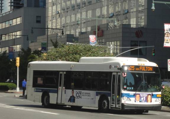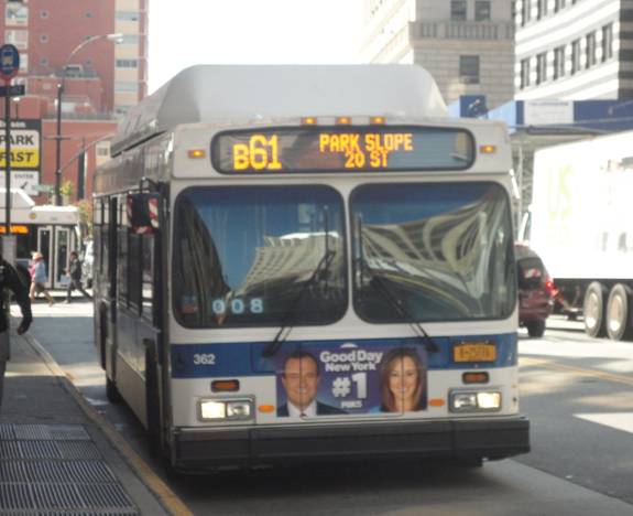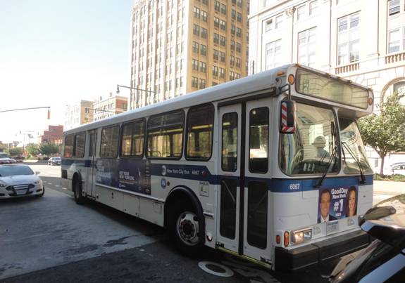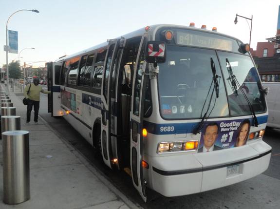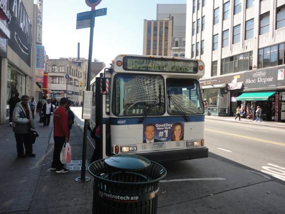 I got off at 59th street and filmed the train pulling out. I transferred to the “D” line and rode into Brooklyn. I was looking for an RTS. There was a mall nearby which I went into for a few minutes and then left. I wandered down the street until I saw an RTS coming. I ran to the stop and photographed the bus before I got on.