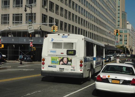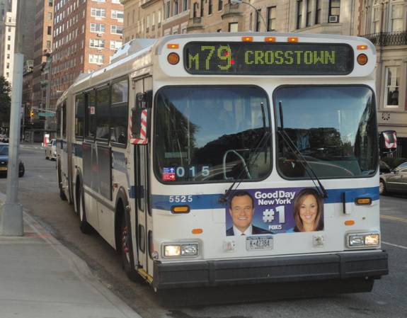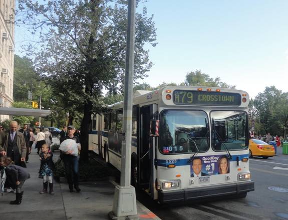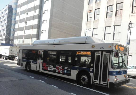 I was at the east side of the park. I caught an Orion 7 NG and rode to 79th Street and got off. I bought a lemonade from a street vendor and went to catch a bus. I saw a D60 heading west. I photographed it before I got on.