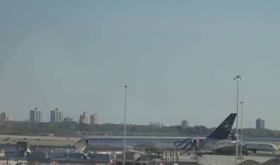I then walked back to the subway and boarded an eastbound “E” train and rode to the second last stop on the line and transferred to the Airtrain to JFK Airport. I rode to Terminal 4 and took some photos of planes from the train.