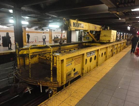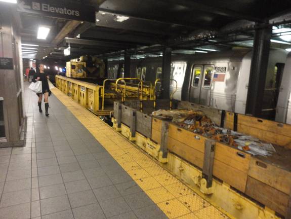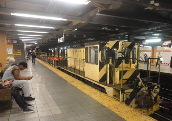 A Manhattan bound “A” train arrived and I got on. I rode the train to 14th street when I saw a MTA work train in the station. I got off the train and photographed the work train