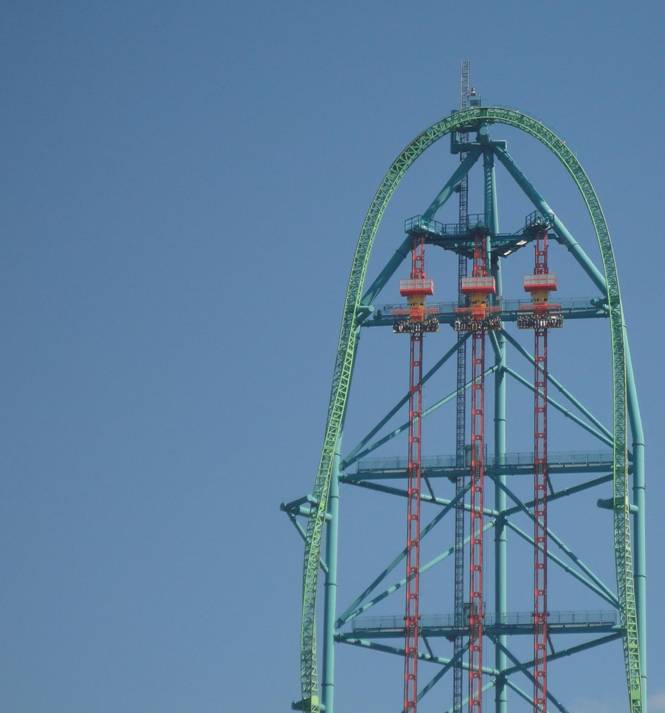 128 miles per hour) in 3.5 seconds, is 456 feet (or 45 stories) tall. Kingda Ka