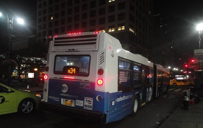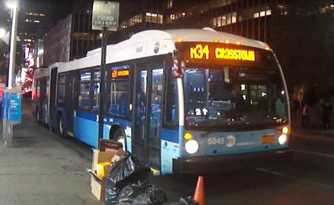 I soon found myself going south one subway stop to Penn Station for dinner. On the way, I took a short ride on MTA's Jump Bus service. I photographed the bus after I got off and filmed it pulling away.