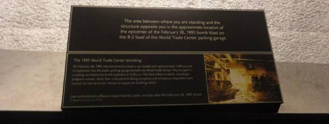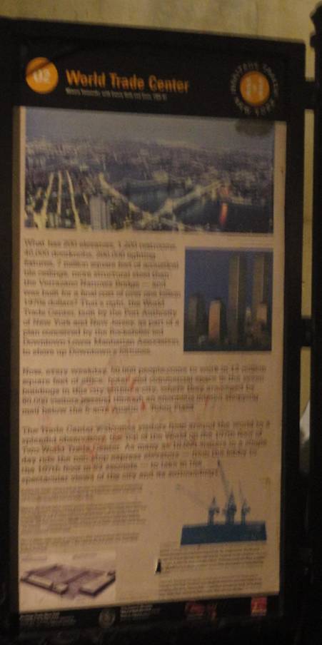 I then photographed a sign that pointed out the position of where the truck bomb exploded in the February, 1993 WTC bombing.