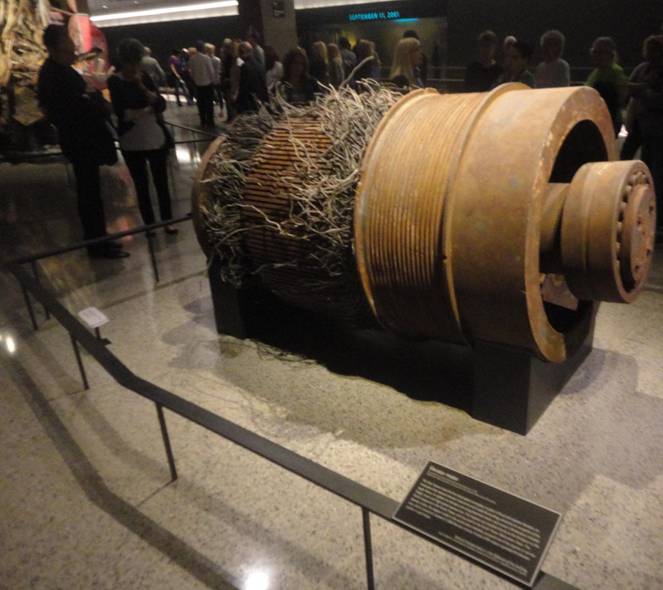 I then photographed an elevator motor. On 9-11 following the impact, 5-6 people were stuck in an elevator including a window washer. They pried open the doors to find themselves facing drywall and using nothing more than a squeegee, they were able to chisel through the drywall to the washroom where they called for help. A firefighter found them and led them to the staircase. They survived.