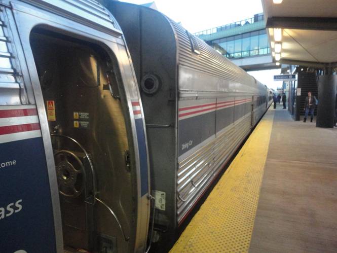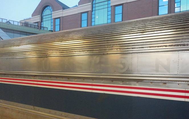 It was hard to make out in my photos, but the second unit on my train was Amtrak #156; the Phase 1 Heritage Unit. I took some photos.