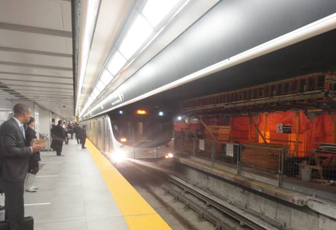 I went down the escalator and phoned home. I then went to the subway. Since my last trip, a second platform had been built to reduce overcrowding. The new platform handles people riding towards Finch while the original platform handles people heading towards Downsview.