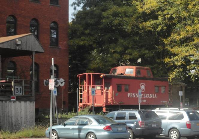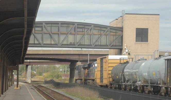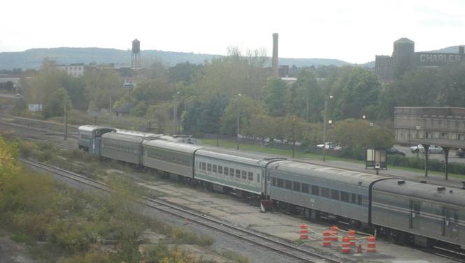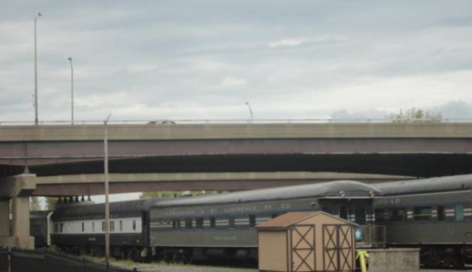 I then went inside the station for a few minutes. I headed out assuming the Maple Leaf would be on the closest platform track. However, an announcement was made it would be on the far track. I ran back into the station and climbed the stairs to the walkway to the far platform. I was able to make it before the train came in sight. While I was waiting, I again photographed the equipment from the Adirondack Scenic Valley Railroad.