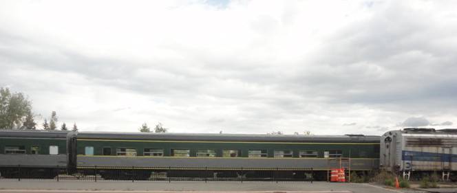I walked to the back of the train and was able to see that the baggage car used to be a Union Pacific baggage car as I could still make out part of “Union Pacific” on the top of the car despite the fact it's been over 40+ years since it was last painted in Union Pacific colours.